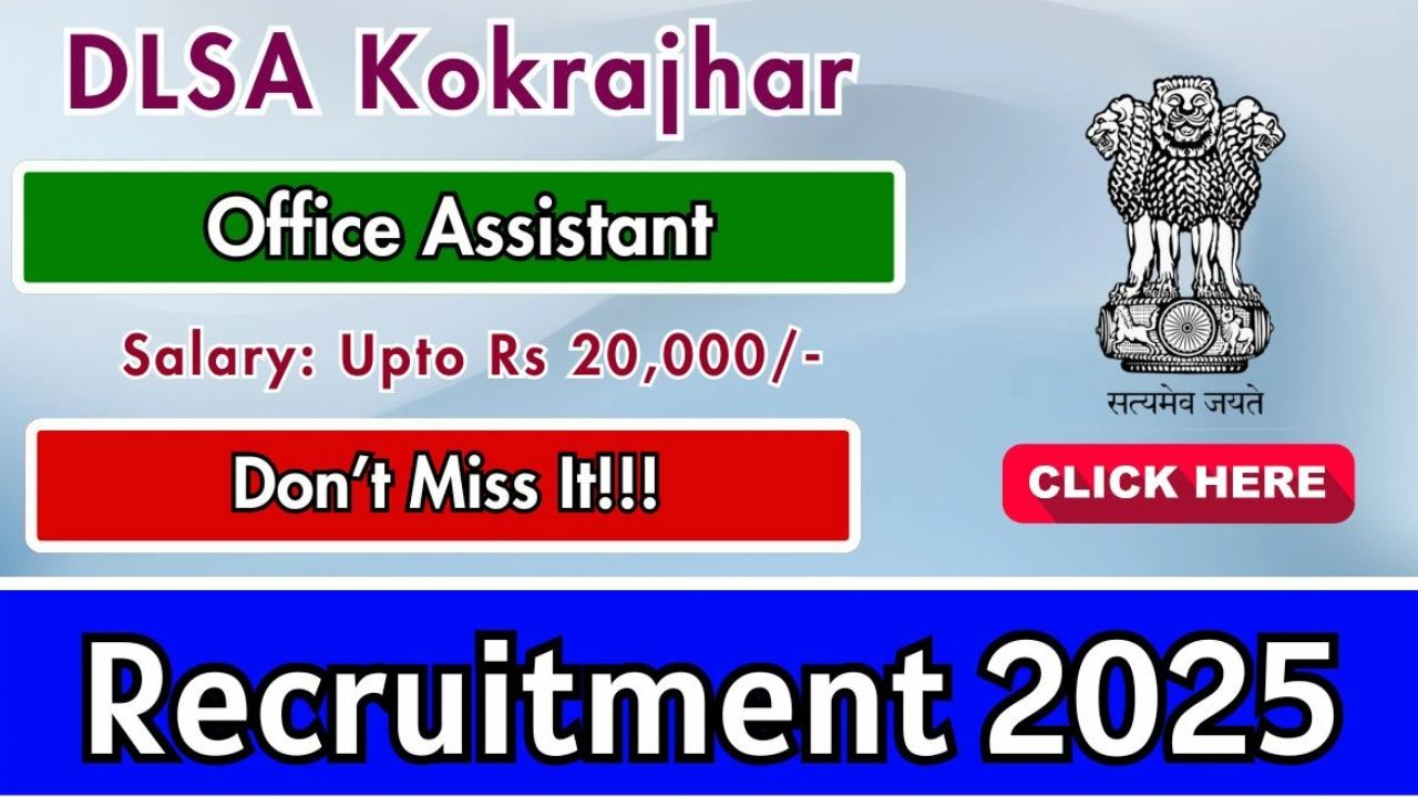 District Legal Services Authority (DLSA), Kokrajhar, Assam, has announced a recruitment drive for the position of Office Assistant. This is a great opportunity for candidates seeking government employment in Assam. The application process is offline, and the last date to submit applications is 20 October 2025.